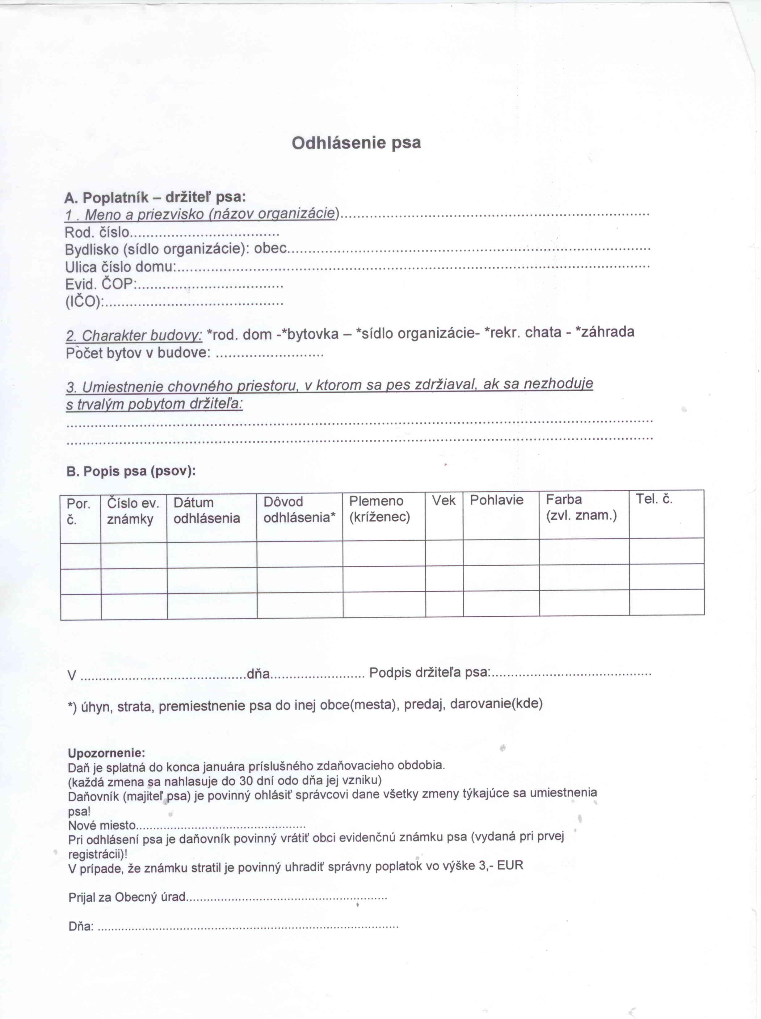 Daň za psa - prihlásenie
